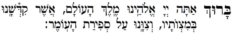 BA-RUCH A-TAH ADO-NAI E-LO-HE-NU ME-LECH HA-OLAM ASHER KID-E-SHA-NU BE-MITZ-VO-TAV VETZI-VA-NU AL SEFI-RAT HA-OMER.